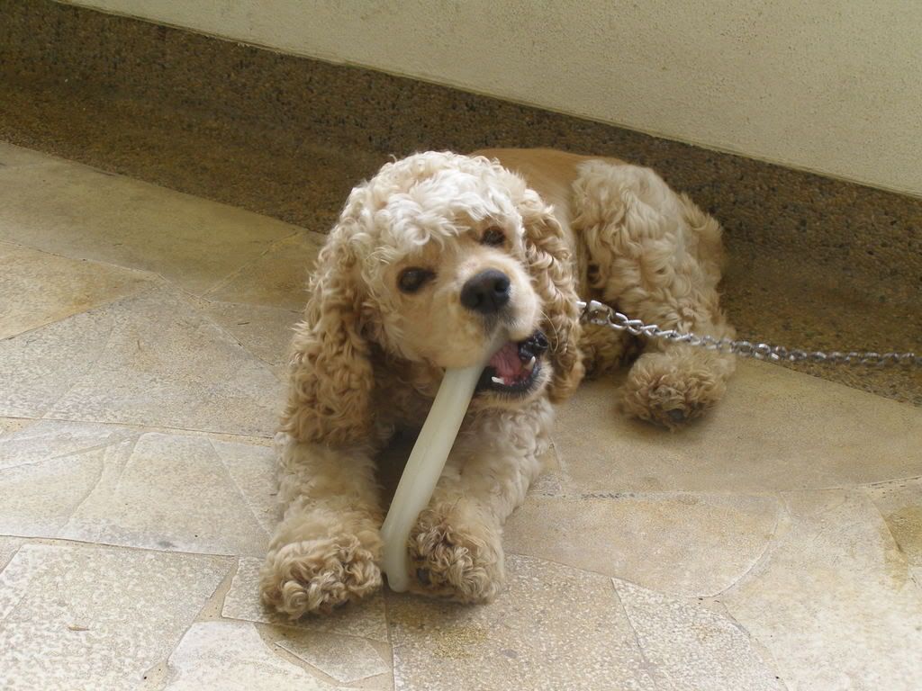 I guess what happened was that he ran out of the house, and that a car came and hit him while he was running. And the car hit him on the head. Why didn't the driver see where he (or she) was going? Maybe he/she couldn't avoid Serafin. The least he/she could do was 'fess up, but it's a little scary, confessing, I get it. Maybe the driver thought Serafin was a stray dog... Wait a minute. American Cocker Spaniels aren't strays. YOU DON'T SEE STRAY COCKER SPANIELS RUNNING AROUND THE ROADS. Shut up! Shut up!